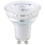 Geavanceerde LED-technologie in een hoogwaardig ontwerp en met een hoge kleurweergave-index. De lamp heeft dim-naar-warm technologie, wat betekent dat hij kan worden gedimd van koud en helder naar warmer en donkerder. Het lumenpakket van de lamp is vergelijkbaar met een conventionele GU10. Lampvoet: GU10, nominaal vermogen: 6,7 W (gelijk aan een conventionele lamp van 80 W), kleurtemperatuur: 2.000 tot 2.700 K, lichtstroom: 575 lm, kleurweergave-index: CRI > 90, dimbaar (dim-to-warm), stralingshoek 36°, levensduur: 25.000 u, energieverbruik: 7 kWh/1.000 u.
