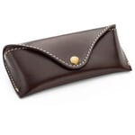 Deze etui van stevig en soepel rundleer bergt zonnebrillen, leesbrillen, werkbrillen ... weliswaar te klein voor skibrillen, maar je kunt er brillen van normaal formaat in opbergen en vervoeren. Het opvallend eenvoudige ontwerp volgt handig de functie: de brillenkoker is gemaakt uit één stuk leer, de smalle klep sluit met een stevige drukknoop. De lichtgekleurde, zorgvuldig geplaatste doorstiksels langs de open randen zorgen niet alleen voor de vorm van de brillenkoker, maar vormen ook een opvallend visueel contrast met het donkere leer.